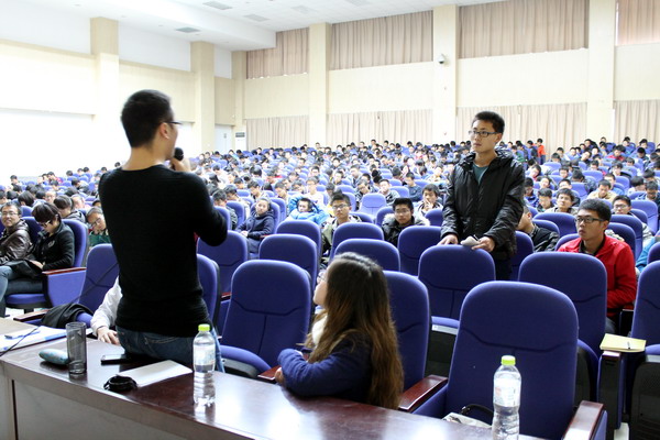 首先演讲的是孔令丽,她与13级新生分享了自己大一入学时的迷茫与困惑,用自己在大学四年的学习经历与比赛心得鼓励每一位同学脚踏实地的努力为自己的未来来去拼搏奋斗。蔡春波的演讲风趣幽默,他丰富的社会实践经验以及出色的的党建工作让每一位同学深深折服。张鹏在员工工作方面与新生分享了心得,介绍了他兼顾学习和工作的经验,告诫员工要“以学习为中心,走全面发展之路”。现场提问环节,同学们就自己困惑的的“大一如何为科技创新做准备”、“专业发展和就业前景”、“志愿服务和支教如何参与”等问题提出疑问,三位员工标兵耐心细致的一一做出解答。
