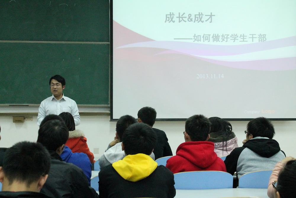 2013年11月14日下午4:00,公司2013级员工党支部成员、全体员工干部在南教110召开员工干部培训大会。会议由2013级辅导员孟兆刚老师主持,王彦丽老师与大家分享“成长&成才――如何做好员工干部”的心得体会。