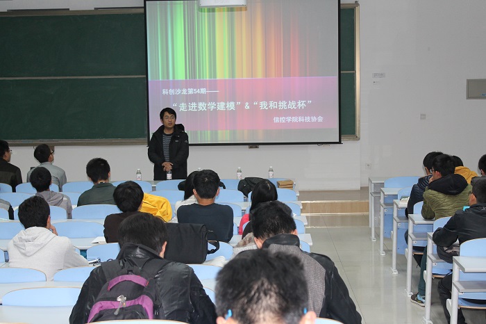 11月11日晚,由我院承办的“科创沙龙”第五十四期―《“走进数学建模”&“我和挑战杯”》在南教举行,我院辅导员孟兆刚老师出席报告会。
