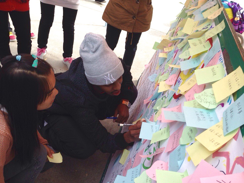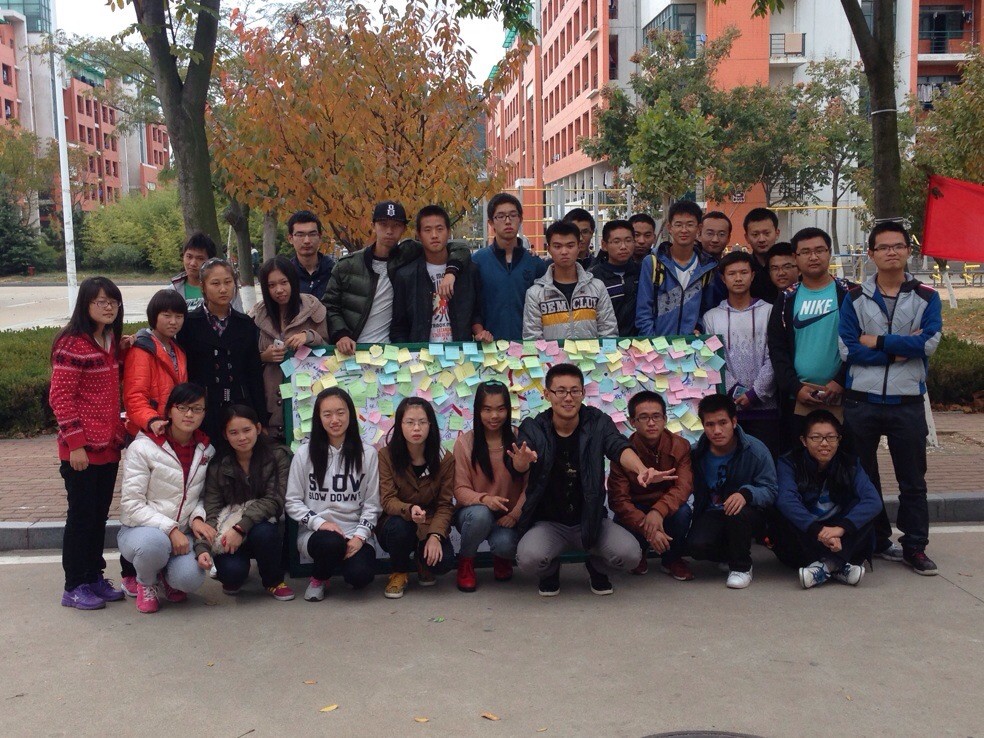 本次活动由电子13-3班全体同学精心策划,在布置场地时就已吸引了大批师生围观。在活动进行中,电子13-3班的全体同学向过路的同学介绍“勤俭”的必要性。通过“问卷调查”、“签名许诺”等方式, 丰富了活动内容,吸引过路的同学们以及外国职工友人们的积极踊跃的参与,纷纷在宣传板上留言签名。最终,电子13-3班全体同学合影留念,本次活动圆满结束。