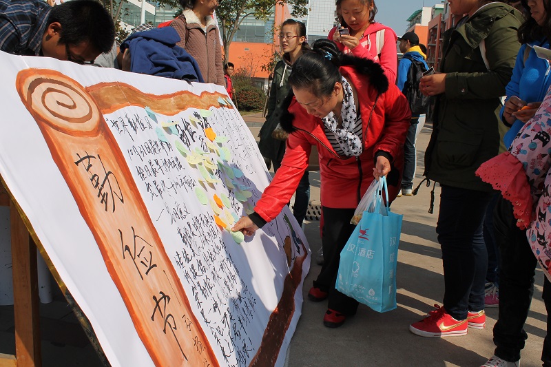 本次签名活动吸引了公司师生的广泛关注,其中还包括许多职工。过往师生积极参与,慎重的在便利贴上写上了“节约用电”、“支持光盘行动”等承诺并签上自己的名字,然后在班级成员的指引下,细心地张贴在展板上。广大师生签名的热闹场面,将活动氛围推向高潮。在签名活动之后,电子13-1班在南堂101举行“勤俭节约,从我做起”的主题班会。会上,全体同学郑重宣誓,承诺杜绝浪费、厉行节约。之后,班主任刘广孚老师提出自己对“节约”一词的看法,并对如何在生活中做到勤俭节约这一话题和同学们进行了交流。