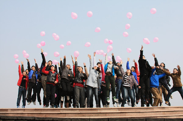 3月16日,全体同学手拿气球,在国旗广场摆成“60”的形状,寓意公司六十周年华诞,其创意得到大家好评。之后两班团支部在公司南门唐岛湾畔举行“放飞气球,我与石大共奋进”系列活动,60只气球同时起飞,象征着公司欣欣向荣,同时也体现了新时期老员工的活力与激情。
