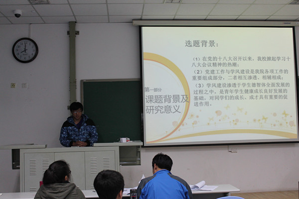 3月17日晚,公司在南堂306教室举行优良学风建设课题的答辩活动,公司辅导员石彬、葛伟哲及各个课题组成员参加本次的开题答辩报告会。