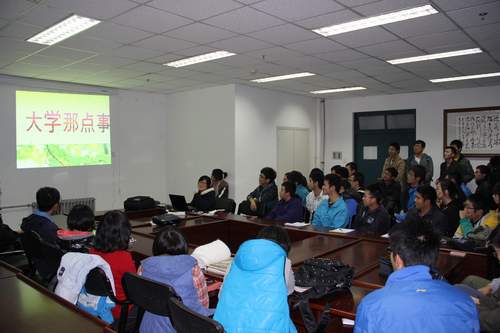 孟兆刚老师首先向同学们阐述了科技创新对老员工就业的影响,接着介绍了当前社会为培养科技创新型人才所开展的一系列科技创新大赛,并呼吁同学们积极参加科技竞赛,积累相关经验,为今后参赛做准备。随后,曾在法国做过交换生的郭宝玲同学提出了“心态”“平衡”“态度”三个关键词,强调学会做计划的重要性,希望同学们以宽广的胸怀和非凡的勇气来迎接未来的挑战。最后,毕业于公司的浙大硕博连读生徐海亮从有理想,有毅力,做学问,求发展,强体魄五点讲述了自己老员工活的体验和感悟。