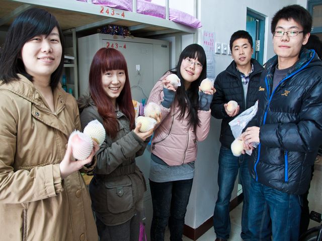 3月6日中午,信控公司的8名男生代表,提着早上刚刚采购回来的苹果,走入研究生二号公寓,按照信控公司98名女研究生名单,逐一地为她们送去香脆可口的苹果。每敲开一扇宿舍的门,送去的是一份意外的惊喜,迎来的是一脸满意的笑容,一时间,欢声笑语充满了整个女生宿舍。