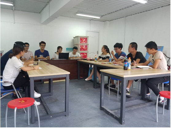 聂梦真和各服务队队长进行了交流和商讨,确定了2017-2018学年同心圆工作发展计划,他提出,各服务队长及主要干部要“取其精华,弃其糟粕”,对于好的活动要继续传承下去,意义不大的活动要另起炉灶,不断创新,把同心圆打造成一个高质量的实践性社团。同时,陈红洲、高发和刘文雅也提出了对新任干部的要求,把一些新的看法和经验与各位队长进行了分享。最后,各主要干部就未来发展表达了自己看法和规划。
