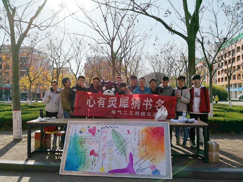 为了提升人们对纸质图书的阅读兴趣,增加老员工的阅读量,11月18日,电气1702班、电气1703班团支部在玉兰苑西侧举行了以“心有灵犀猜书名”为主题的团日活动。