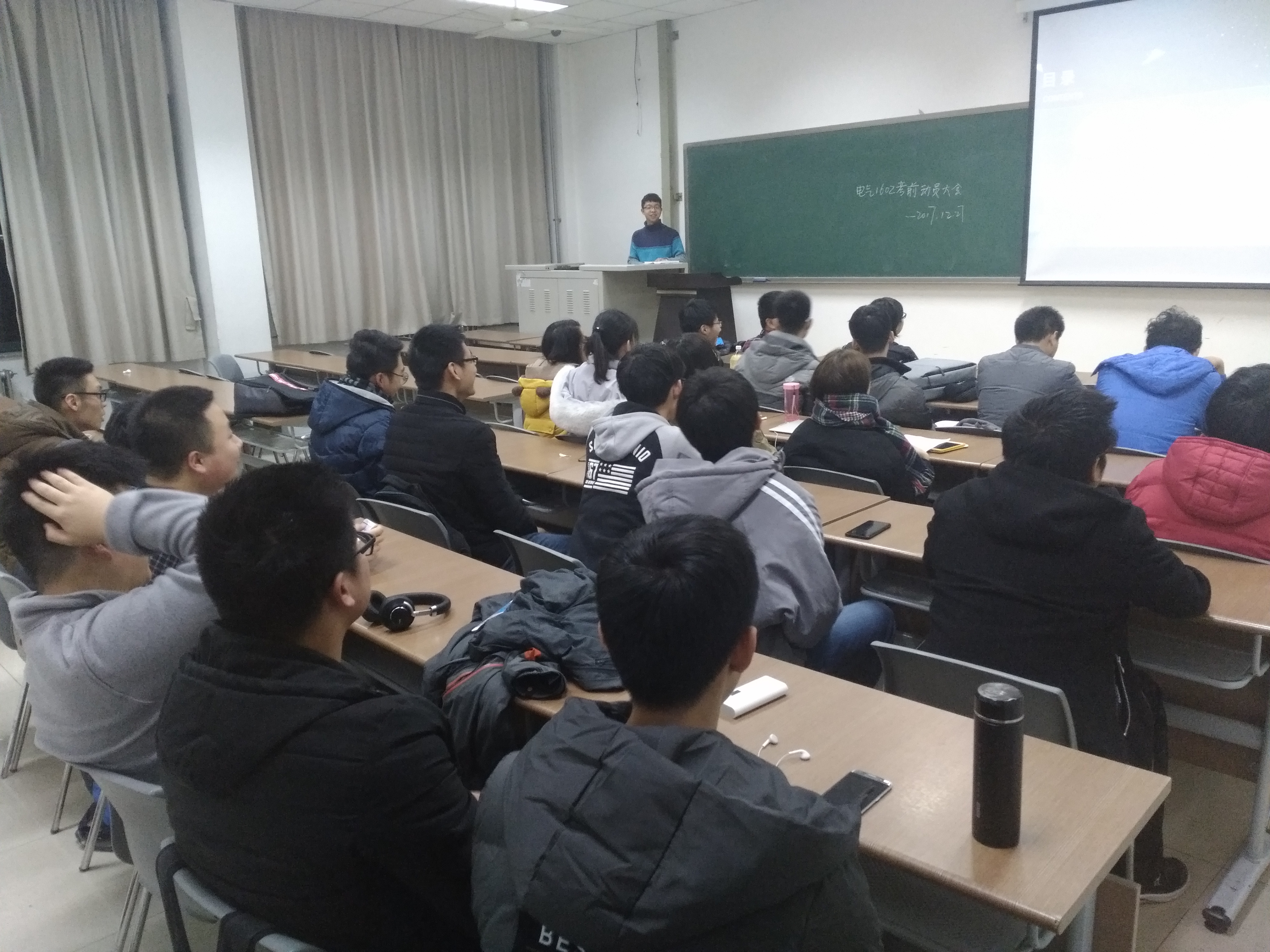 期末将近,为营造良好考试氛围,取得优异考试成绩,12月27日晚,电气1602班在南堂311室召开了考风考纪主题班会暨期末考试动员大会。电气2班班长王梓屹主持班会,电气1602班全体同学到场,并邀请卓越班申晓阳与程雪颖同学参与。