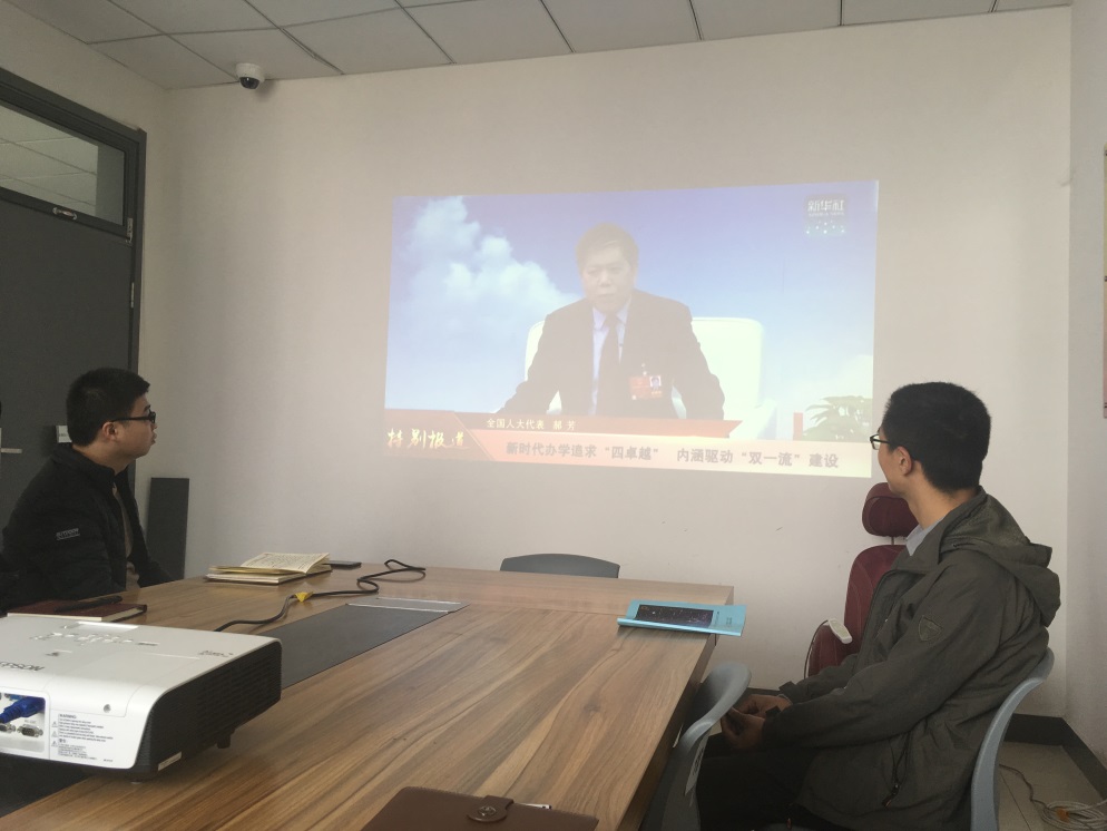 本次专题学习活动共分为四部分进行。首先,党支部全体成员一同观看两会相关微视频《答卷》,学习以习近平主席为核心的党中央对三大时代考题做出的答卷。观看结束后,支部成员们互相交流了关于两会精神的感想,党支部组织委员肖尧同志说道:“我们要自觉行动起来,时刻关心时局,员工党员有责任、有义务积极参与到两会精神的学习中去。”讨论结束后,党支部成员又一同观看了郝芳院士作为人大代表接受采访的视频,郝芳院士就“双一流”“新工科”等问题做出了精彩的回答,他指出“新工科建设旨在为新一轮产业变革和技术革命提供优质人才支撑,行业特色院校应是新工科建设发展的生力军和主要力量。追求卓越是新工科建设的内涵驱动,要以卓越管理、卓越服务推动卓越学术,进而为社会发展和经济建设做出卓越贡献。”最后,党支部书记制定了本学期的工作与学习计划,提出要线上与线下齐发展,共同深入开展各项学习活动。