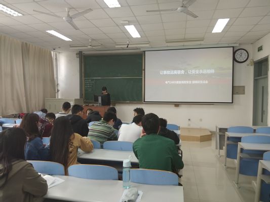 5月13日上午,电气1601班于南教112室召开以“让事故远离宿舍,让安全永远相伴”为主题的团组织生活会。会议由团支书韩颖斐组织,电气1601班全体员工和班主任陈荣参加。