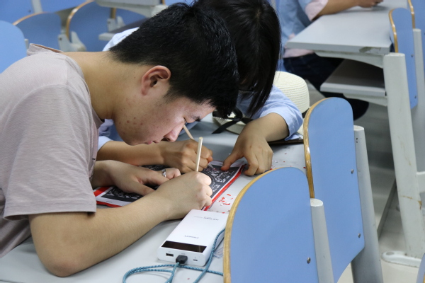 本次活动吸引了全校近600名师生的关注,其中直接参与剪纸的人数超过200名。活动伊始,到场人员在电子1701班团支书尚韵的带领下观看了与上合组织有关的视频资料。随后,大家欣赏了剪纸协会所珍藏的剪纸作品,并近距离接触了精美的剪纸作品,感受了剪纸的艺术魅力。最后由剪纸协会会长谢沛廷讲解刻刀的用法以及在雕刻、剪纸过程中的注意事项,参赛选手认真听取了剪纸的过程以及相关技巧,剪纸活动正式开始。参赛选手两两一组,用手中的刻刀和垫板,制作设计好的剪纸图案及字样。“你把这些小细节留到最后会不会好一点?”“这个圆你把它分为两部分刻吧。”“哇,这个真的是太难了!”……两人小组内合作紧密、交流密切,整个活动现场热闹非凡。