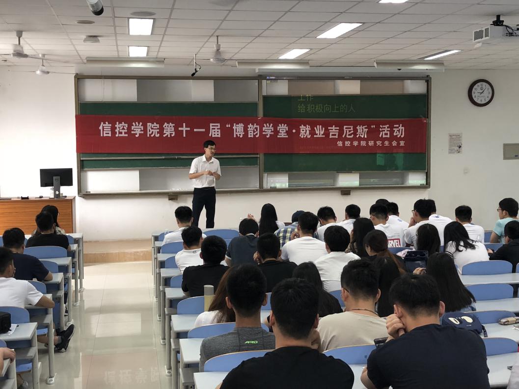 2018届毕业生就业工作逐渐接近尾声,为了充分发挥就业典型的示范作用,将就业经验传递一下去,信控公司于6月24日在南教404举办“博韵学堂——2018届毕业生经验交流会”,辅导员姜飞老师与公司研究生一同参加了本次活动,活动由研究生会张新铭主持。