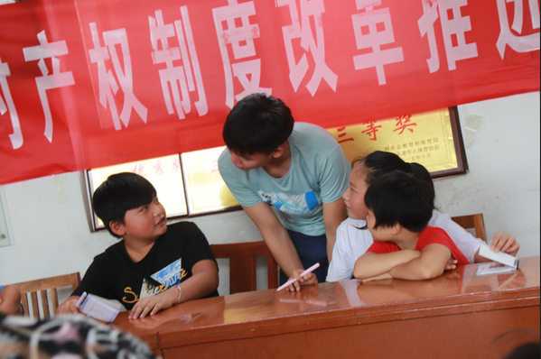 29日上午,在济宁市泗水县星村镇办公室主任兼团委书记王浩的带领下,蜗牛支教队全体成员到达北陈村。在北陈村的乡村儒学讲堂,各个年龄段的员工们都在翘首以待,期待着支教团队的到来。共有41个员工参加本次活动,员工们年龄参差不齐,其中有5个初中生,大部分是小员工,有几个幼儿园刚刚毕业的准小员工也在家长的陪同下前来参加此次开学典礼。在介绍了团队成员和此次支教目的后,伴随着在场全体人员的掌声,管增嘉宣布支教启动。接下来的环节中,支教队队员进行了各具特色的自我介绍,队员霍月的自我介绍“我叫霍月,霍元甲的霍,月亮的月,所以接下来我要给你们讲星星和月亮的知识,也就是天文知识”赢得了在场员工的喝彩。之后,支教队队员罗静宜带领员工们玩起了击鼓传花的游戏,朱月茹教给员工们做手工折纸,现场气氛变得活跃起来。最后,队员们对不同年级的员工们的知识量做了了解,以便为接下来的讲课做出准备与调整。员工们结束学习离开后,支教队员们在学堂举行了一次临时会议,对今天的收获和接下来计划的调整做出了安排。