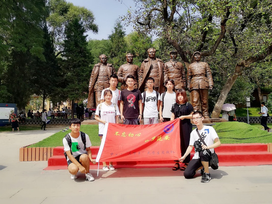 (队员们在老一辈革命家铜像下的合影 尚佳辉摄影)