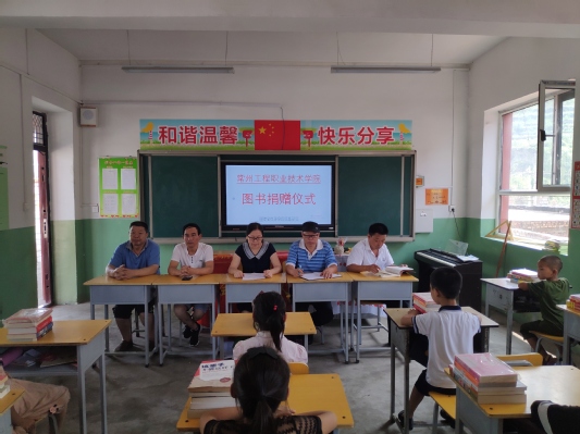 8月5日,在麦子支教队在固贤乡寄宿制小学开展支教工作期间,恰好赶上校外单位对公司的图书捐赠仪式,据了解,捐赠者系常州工程职业技术公司的工作人员,负责人是从固贤村人赵小芳,公司全体员工以及支教队队员参加了仪式,校领导依次出席。