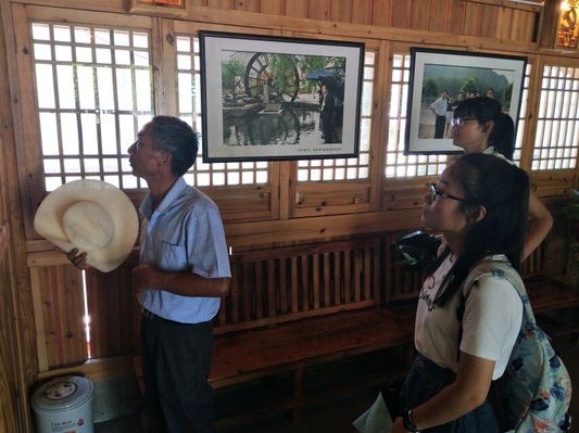 陈书记带领调研队参观后岸的历史墙 苏尚伟摄