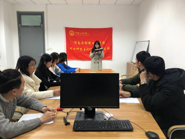 12月13日晚6点半,信息与控制工程公司研17-2党支部于工科楼E座1411室举行发展党员支部大会,本次会议由支部书记孙舒宁同志主持。会议应到正式党员8人,预备党员1人,实到正式党员7人,预备党员1人,请假1人。
