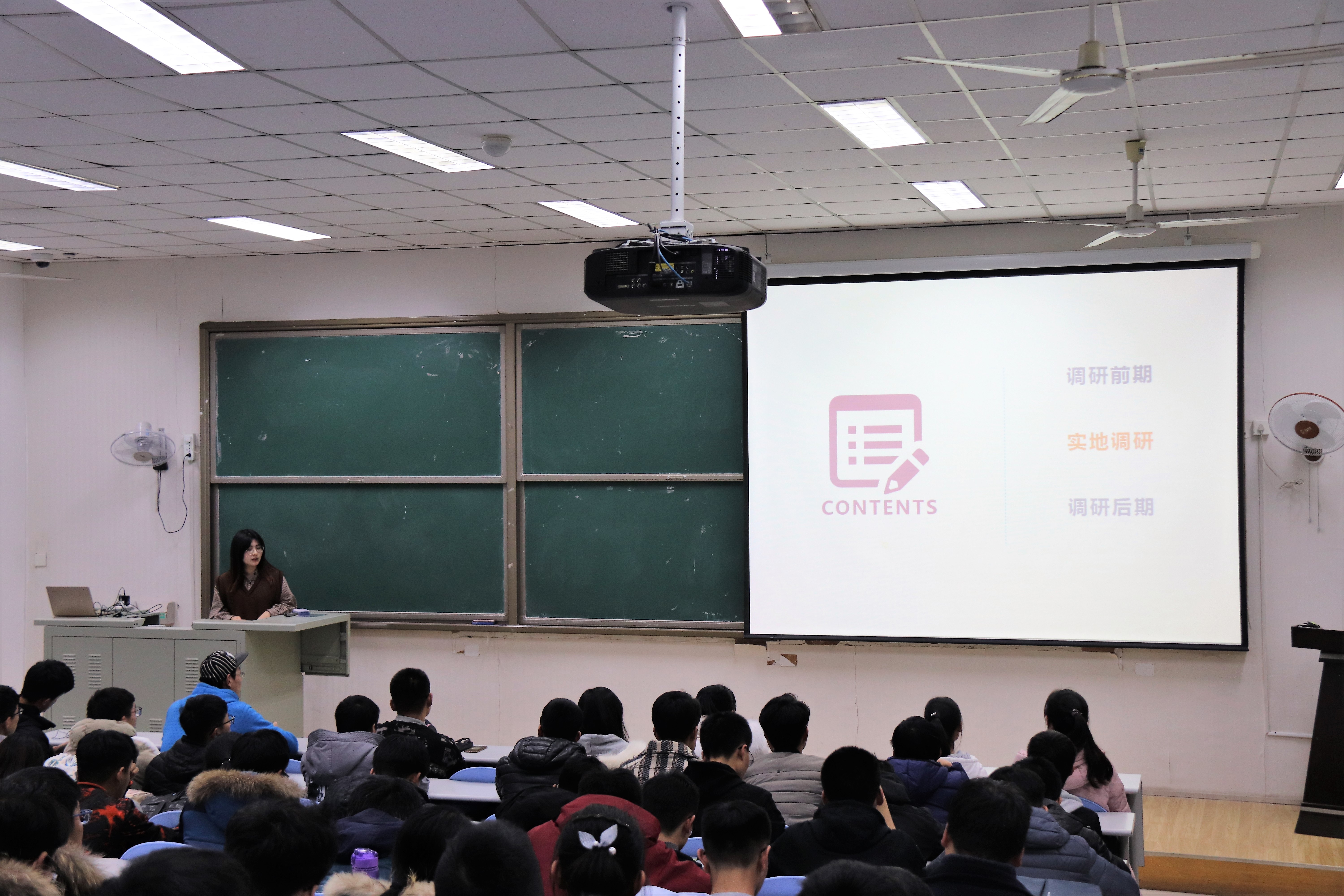 活动伊始,管增嘉为员工们总体宣读由院员工会志愿服务部与调研中心发起的寒假实践活动的章程,邀请UPC调研中心副主席陈一元为大家讲话。她强调首先要准备好老员工社会实践介绍信与社会实践考核登记表,并讲解两种文件的填写要求,之后又从调研前期、实地调研、调研后期三个方面给员工做出具体讲解,并列举优秀获奖团队调研实例对调研中需要注意的问题进行说明。随后,信控公司同心圆协会副主席梁硕上台就支教与宣讲两主题调研为员工介绍。他先对校级支教队与院级支教队做以区别,然后就“支教能做什么?支教怎么才能不流于形式?”两问题向与会人员阐述支教的内容形式,他说道:“支教对于个人的发展十分的有帮助,要不忘初心地对待实践任务才能在实践中真正获得成长。”宣讲方面,他指出在宣讲实践过程中,首先要做好宣讲照片或视频拍摄,同时也要重视新闻宣传投稿,并指出其在实践结束后的评奖评优的重要性。