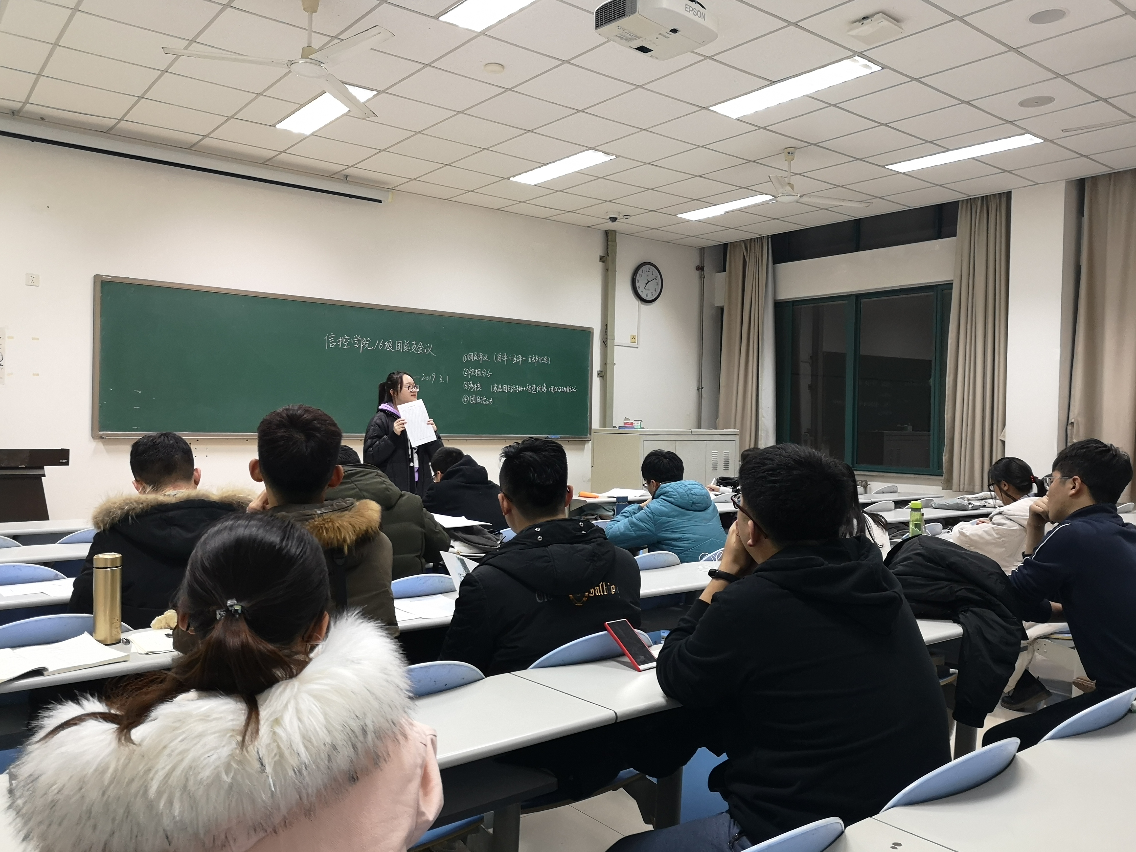 2019年3月1日晚七点,信控公司16级团总支于南堂楼505教室召开本学期第一次会议,会议由团总支书记李宜晓主持会议,主要梳理近期团总支的工作安排。