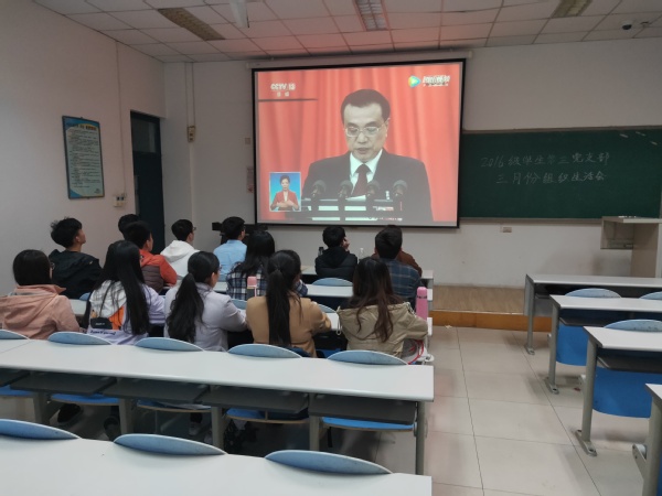 支部全体党员观看了李克强总理在第十三届全国人民代表大会第二次会议上作政府工作报告的视频,对过去一年我国在各方面取得的成就和未来国家的新形势和新政策有了更加深刻的认识。