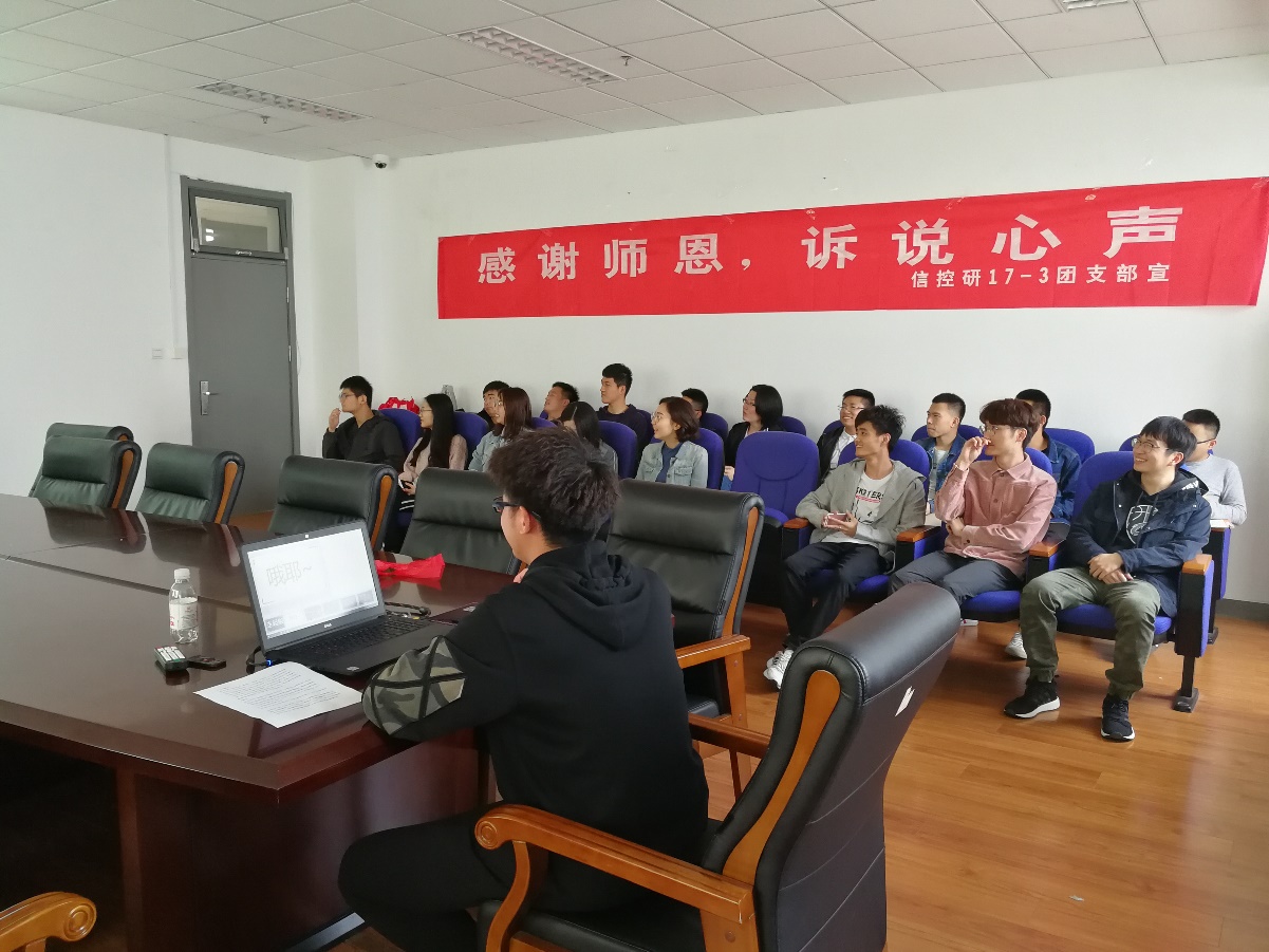 为了让同学们了解身边这些“好老师”,激发同学们对老师、对祖国的感恩之心。2019年5月12日,公司研17-3团支部在工科E座1329开展“感谢师恩,诉说心声”主题团日活动。研17-3团支部全体成员参加。