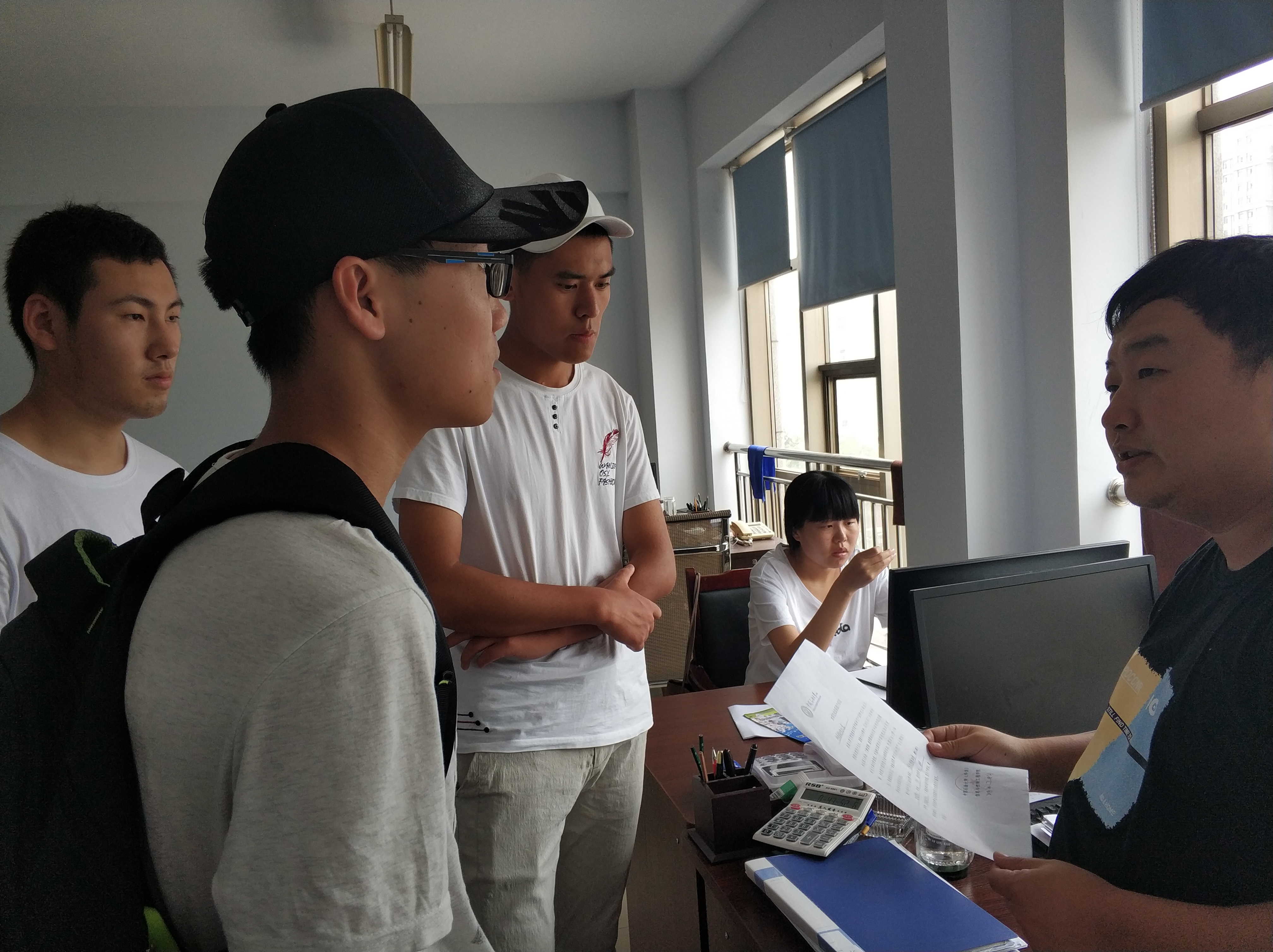 7月22日上午,“七彩假期沂蒙行”暑期实践队开始了以“即将胜利的脱贫攻坚之战”为题的采访活动。在队长张帅的带领下,实践队全体队员张泉、王君尧、尹建尧、徐杰一行五人来到平邑县扶贫办和仲村镇,通过采访扶贫办负责人和仲村镇益客种禽有限公司管理处负责人的形式,成员对该地当前脱贫攻坚形势有了深刻认识。