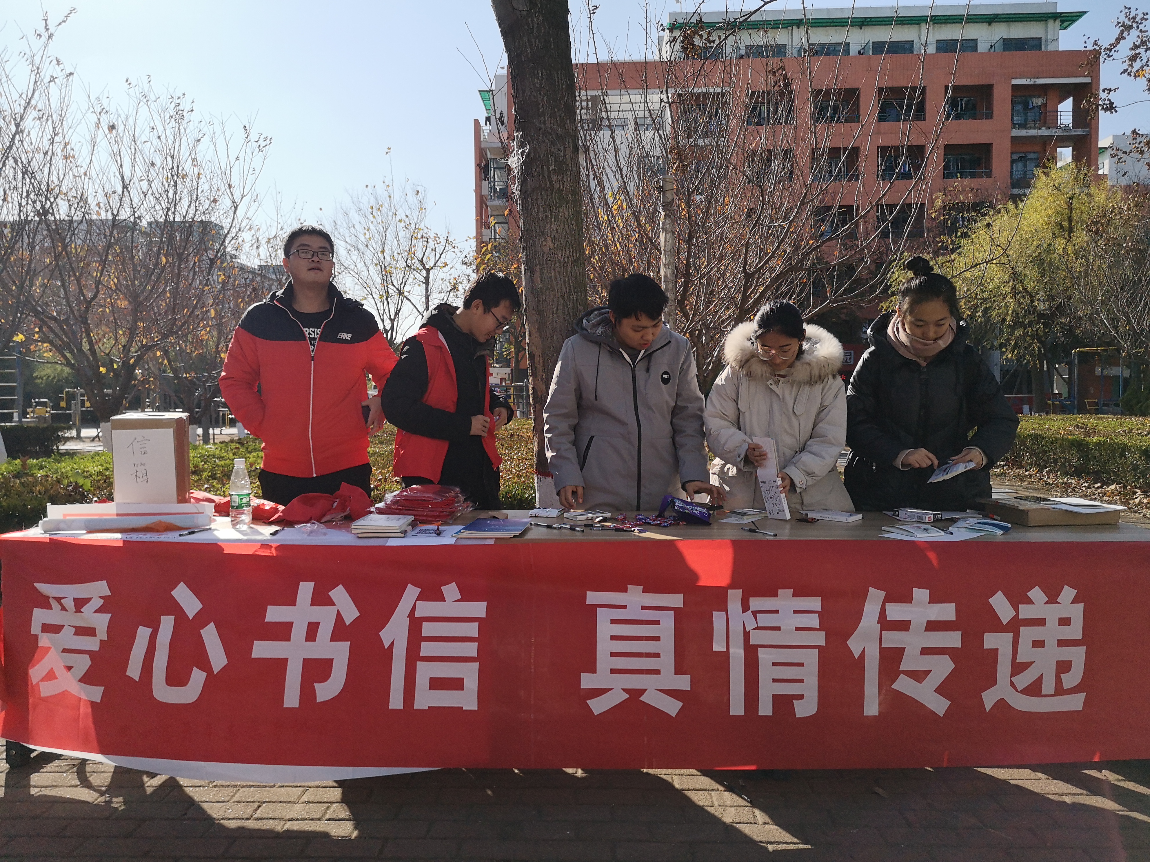11月28日中午,为在寒冷冬日向需要的人送去温暖,BB贝博艾弗森同心圆青年志愿者协会在玉兰苑餐厅西门举办了“爱心书信,真情传递”主题活动。