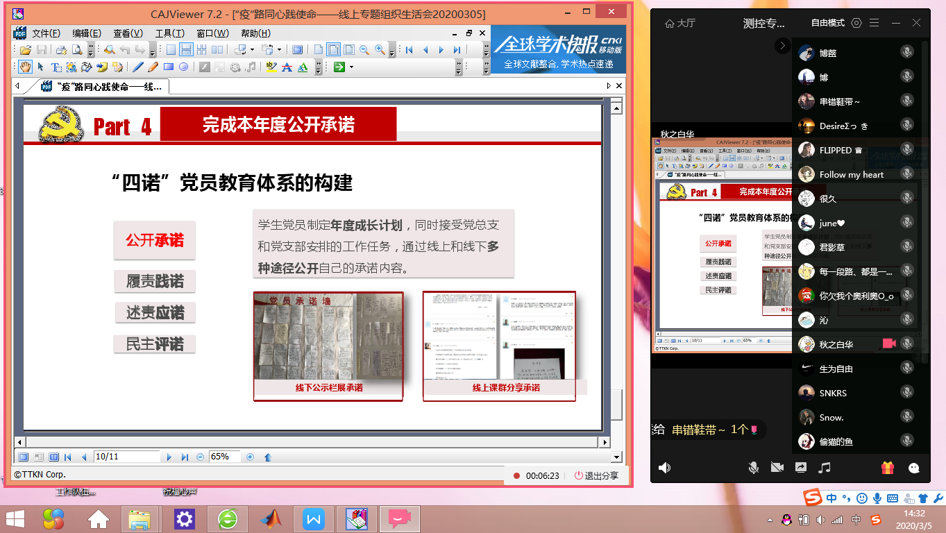 为了落实公司疫情防控工作安排,推进公司“四诺”党员教育,引导同学们在寒假期间积极抗击疫情,发挥党员先锋模范作用,助力疫情防控阻击战取得胜利,公司测控专业第二党支部于35日开展“疫路同心践使命”线上专题组织生活会,测控专业第二党支部党员与积极分子参与此次会议。