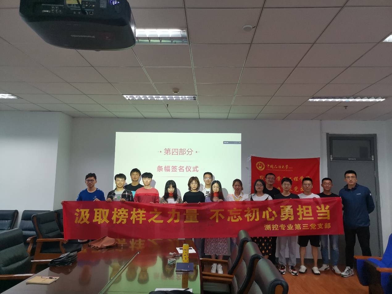 会议伊始,潘超同志介绍本次会议主题及流程,紧紧围绕庆祝中国共产党成立99周年,以“讲”、“读”、“说”、“写”四种形式开展本次会议。“讲”:首先由李超群同志讲述本色英雄张富清的故事,对其取得的赫赫战功和奉献精神进行了充分的学习;接着由潘超同志讲述“北斗精神”硬核托起“航天强国梦”,带大家了解了北斗团队是如何一步步攻坚克难,在航空航天领域实现从零到超越的伟大飞跃。“读”:由参会人员自行阅读题为“平均31岁玩命26年,北斗团队:每颗螺丝钉都是我们自己的”的文章。“说”:针对上述学习内容,参会人员积极思考,分享学习心得。积极分子孙建同志进一步从技术角度分析了北斗团队是如何彻底打破了核心器件长期依赖进口、受制于人的局面,倡导大家学习“北斗精神”,把中华民族自强不息的民族精神贯穿到工作、生活的每一个角落。积极分子王文正同志向大家分享了女北斗人王淑芳的故事,表示作为当代老员工,要学习英雄张富清淡泊名利、不畏吃苦的革命精神;学习北斗团队风雨兼程、勇往直前的拼搏精神。郭天凯同志总结道我们要时刻把国家的进步,民族的利益放在第一位,肩负起时代的使命。英雄张富清为党和人民牺牲一切的精神值得我们每个党员和积极分子去学习,去理解,去实践。“写”:通过支部自媒体,根据活动内容参会人员纷纷写下今日的学习心得和体会,确保支部成员能学有所思、学有所获。最后,支部进行条幅签名仪式,倡导支部成员以榜样为镜,向榜样看齐。