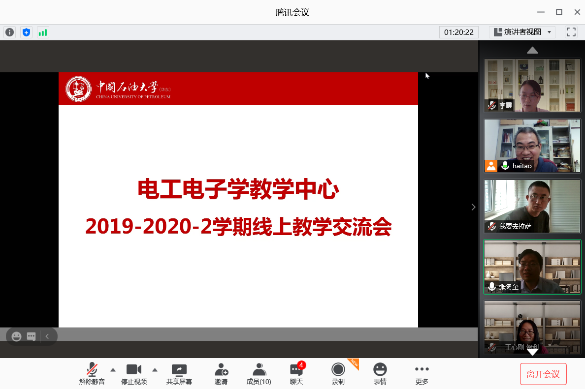 中心教师从近六个月的特殊经历出发,从教学设计、线上授课、考核方式、在线考试等方面分享在线教学的经验和体会,并对在线教学中课堂互动、小组研讨等环节出现的问题进行充分讨论。