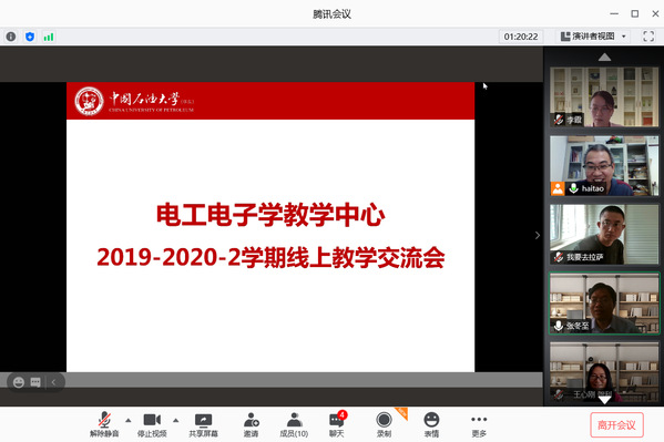 随后,中心教师从近六个月的特殊经历出发,从教学设计、线上授课、考核方式、在线考试等方面分享在线教学的经验和体会,并对在线教学中课堂互动、小组研讨等环节出现的问题进行充分讨论。