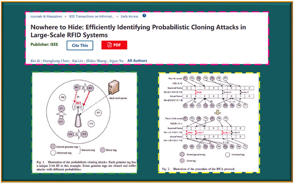 近日,BB贝博艾弗森副教授陈鸿龙在射频识别系统的概率性克隆攻击方面取得新进展,相关研究论文《Nowhere to Hide: Efficiently Identifying Probabilistic Cloning Attacks in Large-Scale RFID Systems》在IEEE Transactions on Information Forensics & Security上发表。硕士生艾欣和陈鸿龙副教授为共同第一作者,陈鸿龙副教授为通讯作者,BB贝博艾弗森为第一署名单位。