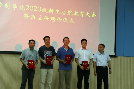 接下来,进行2020级班主任聘任仪式。辅导员吕敬伟向同学们介绍各班班主任,并由苏书记向班主任代表颁发聘任证书。据悉,2020级班主任的选聘面向公司全体教职工,经过个人报名,各系、中心推荐,最终确定7名思想素质硬、责任心强、热爱员工工作的优秀教师担任各班班主任。