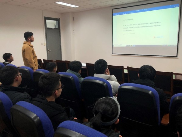 本次主题党日活动主要围绕“四史”中的党史学习开展,结合石油大公司史,意在加深同志们对党史校史的了解。活动分为两个部分,首先支部书记带领大家学习了中国共产党自成立以来的重大转折事件,并观看了石大易班发布的漫画版校史讲解视频。在熟悉相关知识后,进入党史校史知识问答环节。考虑到支部人数较多且本科生和研究生之间互不了解,因此答题环节添加了一点趣味性以增加成员之间的了解。由于会议开始前每人领取了一个随机号码,上一位答题成员可随机叫号挑选下一位成员答题,每人答题前均进行简单自我介绍,依次接龙,最终完成全部题目。题目涵盖党史、校史、重大会议等基本知识,形式包括填空、问答等。随机抽号的答题形式增加了活动的挑战性,增强了成员间的互动,答题过程中,书记也对问题涉及的知识点进行及时补充。