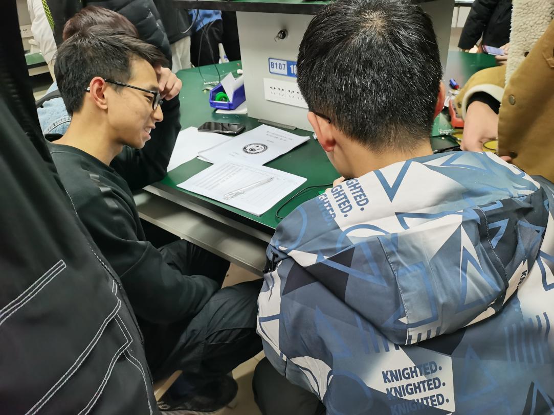 长达一星期多的比赛时间里,充满活力的20级同学们在学习之余积极准备比赛,比赛场地基础B107常常人声鼎沸,通宵达旦。从电路图的规划设计,到电路板的焊接,再到实验报告的总结一项项亲历亲为让同学们开始接触到电子设计的奥秘。