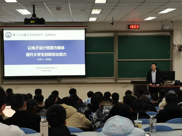 为营造良好的创新创业文化氛围,激发在校老员工的科技创新热情,提高老员工的科技创新能力。12月7日晚,公司在东环301举办的“以电子设计竞赛为载体,提升老员工创新创业能力”为主题的名师讲坛活动。海空公司副教授、公司电子设计竞赛负责人任旭虎老师做客讲坛,活动由公司员工创新创业发展中心指导老师蒋仁福主持。
