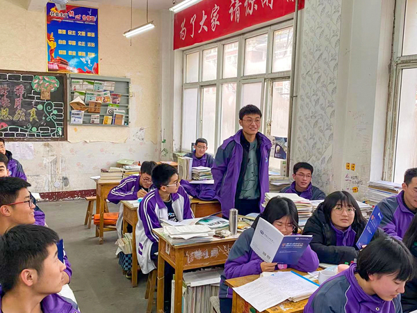 实践队员积极响应当地政府疫情防控的相关要求,并多次与盐山中学的老师交流,了解员工们的学习情况以及对于未来大学的愿景,最终队员们来到了盐山中学重点培养的18级北大实验班进行招生宣讲。在班主任刘老师向员工们介绍完队员们此行目的后,员工们都展示出很高的积极性。