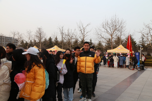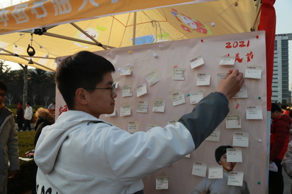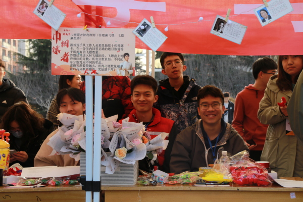 此次活动分为“知识竞答”、“投掷飞镖”和“衷心祝福”三个部分。在“知识竞答”环节中,同学们凭借着自己对党史和杰出女性的了解,根据人物事迹猜出对应的人物。其中为推翻封建统治而牺牲的女烈士秋瑾,慷慨就义时对儿子留下殷切期盼的赵一曼女士和当代知名央视女记者王冰冰最快被同学们猜中。参与活动的同学表示在答题中了解了杰出女性的事迹,以飞镖的形式获得了奖励,乐于参与形式丰富的活动。在“投掷飞镖”环节中,员工们根据积分的总数目获得美丽的花朵、牛角发饰等奖品。最后,经过历史的熏陶和奖品的赠与的同学,在卡片上写下自己对女性或党或国家的衷心祝愿,在背景板前对着镜头表达自己对祖国的祝福。活动接近尾声,背景板早已被学生们美好的祝福填满,一句句简单的“祝我们的祖国永远强大而美丽”,“愿每个女生独立而优雅”,“愿党青春永驻,愿国繁荣昌盛”道出了学生们的真情与热爱。“看着热闹非凡的场面和脸上溢满笑容的工作人员,感受到了同学参与活动的热情与活力,我很荣幸能记录下大家开开心心的样子。”摄像师朱中鹏如是说。