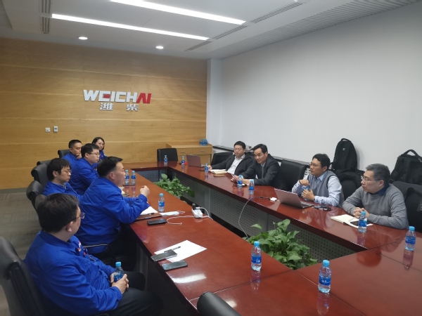 抵达潍柴动力有限公司后,公司人力资源部部长魏兆宗介绍了潍柴集团的发展现状和人才招聘状况,刘伟锋重点介绍了公司的研究方向和合作规划,于连栋重点了解了潍柴的人才培育需求,并就博士后教师入站和专业型博士入校培养等方面与企业进行了深入的探讨。交流结束后,公司一行参观了公司的展厅,对潍柴集团的成长历程和发展前景有了更全面的认识。