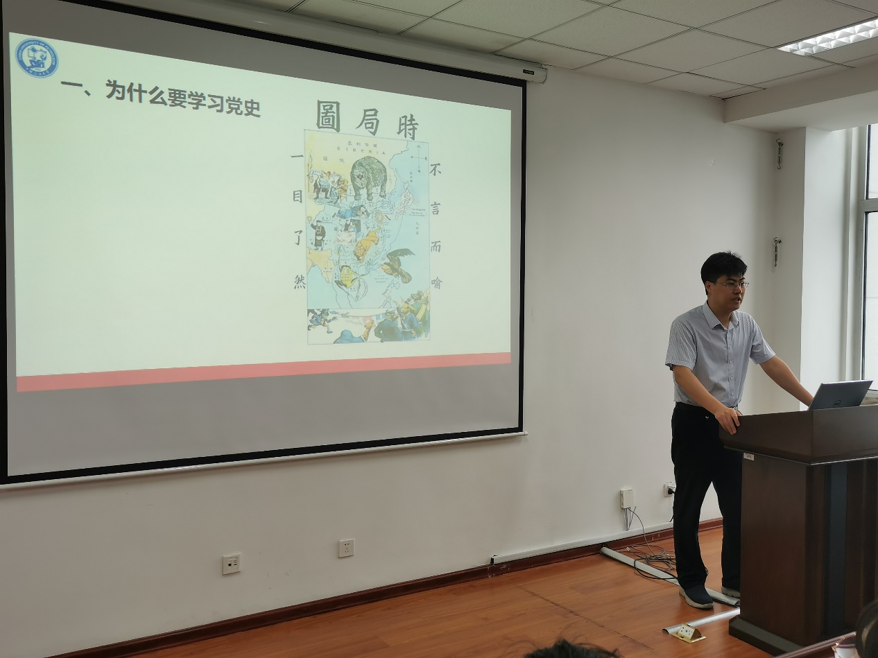 然后,盛立就“为什么要学党史”、“如何学习党史”和“党史学习与科学研究的联系”三个方面进行讲解。