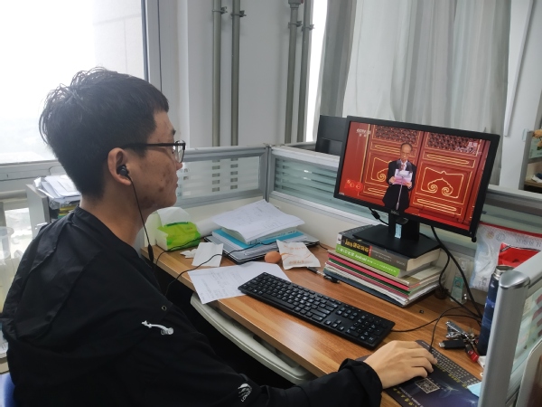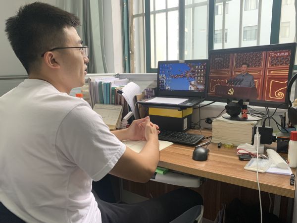 自动化系党支部于工科E1325会议室内共同收看直播,聆听习近平总书记重要讲话。