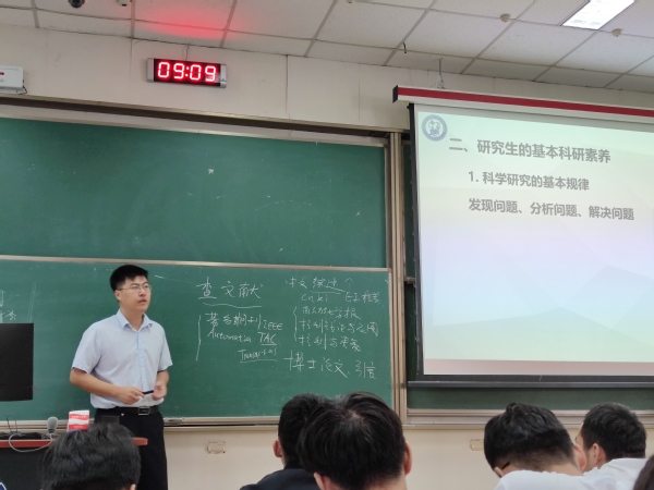 首先,盛立副经理对公司的基本情况进行了简要的介绍,包括公司的发展历程、学位点建设情况等。然后,他从研究生的基本科研素养出发,向同学们介绍了在科研中如何发现问题、分析问题、解决问题,并讲解了论文撰写、论文投稿、论文修改等三个环节。他鼓励每位新同学要尽快完成从本科生身份到研究生身份的角色转变,积极主动的与导师进行沟通,实现从学习到创新,被动到主动,个人到团体的转变。最后,盛立副经理重点强调了研究生基本学术道德,他要求每位研究生都必须严守学术道德红线,绝不允许出现抄袭、一稿多投、伪造数据等行为。
