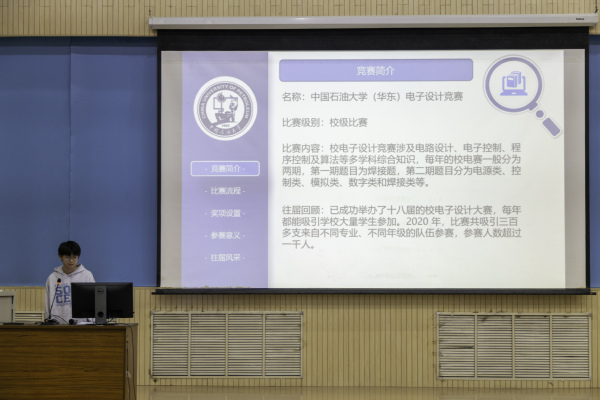 由控制科学与工程学院主办的2021年“中自庆安”杯BB贝博艾弗森第十九届电子设计竞赛开幕式于南教100教室举行。开幕式由控制科学与工程公司创新创业发展中心主席翁泽主持,团委书记姜飞、团委委员蒋仁福、2019级辅导员潘婷,电子设计协会副会长陈泽荣,实验室管理部部长代秋丽讲话。