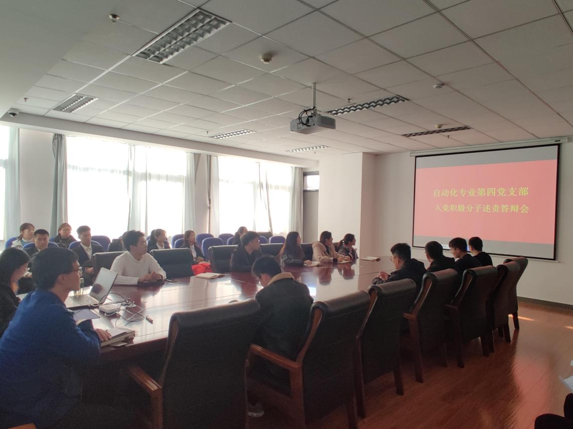 自动化专业第四党支部按照公司要求,经过前期群众意见征集和积极分子考核,确定谢清涛等4名研究生积极分子和张硕等11名本科生积极分子满足成为发展对象的基本条件,即已取得党课结业证,积极分子培养考察满一年,且“一不四合格”考核五项全部为合格。为了进一步了解积极分子同志们在这一年中的表现,更全面的考核同志们是否满足确定为发展对象的条件,特召开此次入党积极分子述责答辩会,答辩表现将作为能否最终确定为发展对象的重要参考。