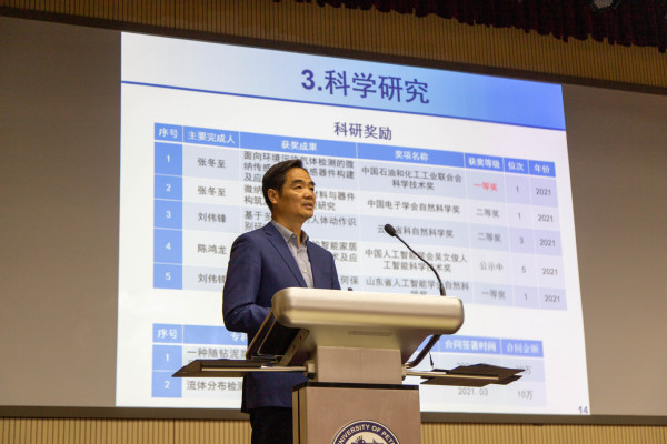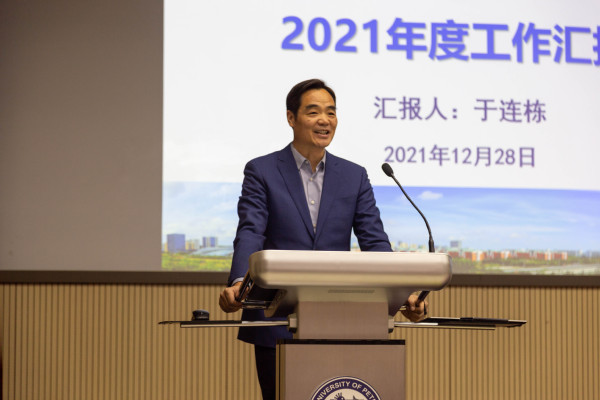 首先,经理于连栋作2021年度工作总结报告,他从人才培养、团队队伍建设、科学研究、团队建设、对外交流、员工工作、党建工作等七个方面介绍了公司2021年各项工作取得的成绩,同时提出了存在的问题,最后,他代表公司班子向全院教工致以新年的祝福,希望新的一年全院师生继续奋进,各项工作更进一步,推动公司和学科高质量发展。
