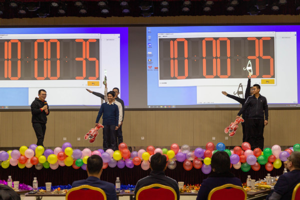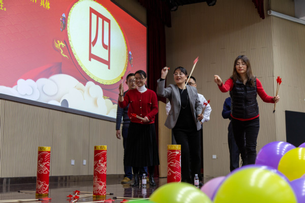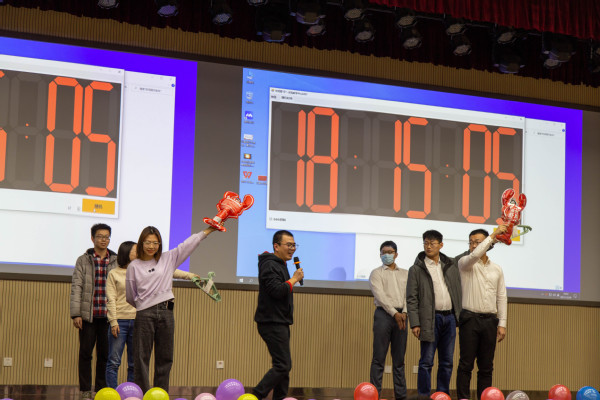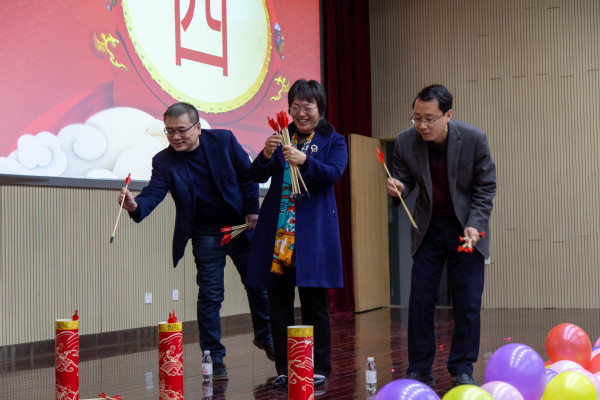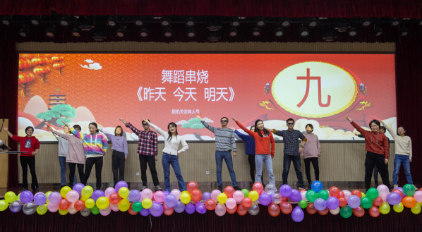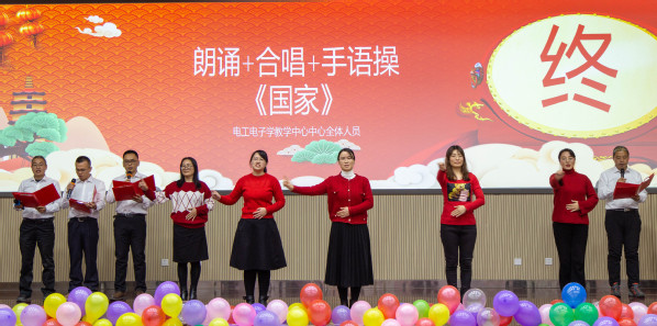 随后,元旦联欢会正式拉开帷幕。经过公司工会的精心筹备和院属各单位的精心准备,各个节目精彩纷呈。实验中心表演的开场舞蹈《浪漫樱花》活力四射,动感的舞姿引起了全场热烈的喝彩;测控系青年教师石翔、陆洋、贾华坤和陈孝喆带来了歌曲串烧《让我们荡起双桨》,洋溢着浓浓的青春气息;自动化专业老师们亲自动手修改歌词并制作了合唱《教师阵线联盟》的背景视频,图片中许多退休老教师的笑颜让全院教职工感受到了自动化系的温馨氛围;院机关表演的舞蹈《昨天 今天 明天》将八〇、九〇、〇〇年代的歌曲片段与冬奥主题曲目连接在一起,全体工作人员共同演绎,展现了院机关积极向上的良好精神风貌;刘伟锋、赵小明、蒋仁福、曾菲表演的三句半《夸夸咱公司》,不仅讲出了公司的成绩,四位演员精彩风趣的表演更是将晚会气氛带上了高潮;精彩纷呈的节目中穿插了多个游戏环节,其中既不乏《投壶》、《诗情“画”意》等弘扬中华传统文化的趣味活动,又有《时间简“示”》等比赛反应和配合的竞技活动,现场一片欢乐祥和,在《红歌猜猜猜》游戏中,王树斌老师不仅猜对了最多的歌曲,赢得了比赛,还进行了多首红色歌曲的现场演唱,唱出了全体教工对中国共产党成立100周年满满的祝福与自豪,赢得了全场的欢呼。最后,院友嘉宾为今年获得公司奖教金的教师颁发了获奖证书,电工电子教学中心的老师们朗诵并表演了手语操《国家》,充分展现了公司教工心系家国、献身教育事业的决心,为联欢会画上了圆满的句号。