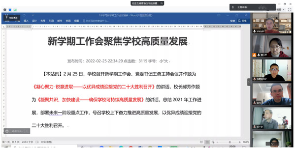 3月6日晚,电工电子学教学中心召开线上视频会议,专题学习公司新学期工作会议精神。会议由教学中心党支部书记曹玉苹主持,中心全体教师参加。