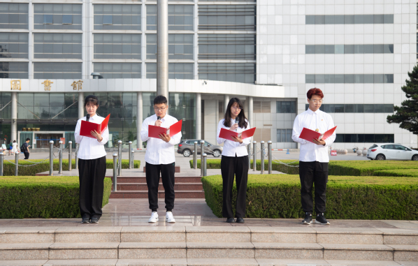 早上六点三十分,在全体参与人员的注目下,国旗护卫队护送鲜艳的五星红旗入场,伴随庄严的中华人民共和国国歌和在场师生的注目礼下,五星红旗冉冉升起,迎风飘扬。升旗仪式结束后,员工代表周家聿、李孟儒、叶飞、蔡振新进行朗诵——《请党放心,强国有我》。“不忘初心,青春朝气永在;志在千秋,百年仍是少年”诵出新一代青年人要以国家为己任,为国家富强而努力的决心。随后,孙永琦进行以“饮冰百年光荣共青团朝气依旧,热血难凉中共二十大再起征程”为主题的国旗下讲话。孙永琦向员工提出明志、修德、学习、担当四点期望,希望控制学子冲锋在前、担当作为,谱写属于自己的青春之歌。紧接着,员工代表丁进、孟佳璐献上致辞,展示出新时代青年人建功新时代、迎接第二个百年新征程的昂扬斗志。活动最后,金龙带领参加活动的员工党员重温入党誓词,旨在让大家时刻听党话、跟党走。