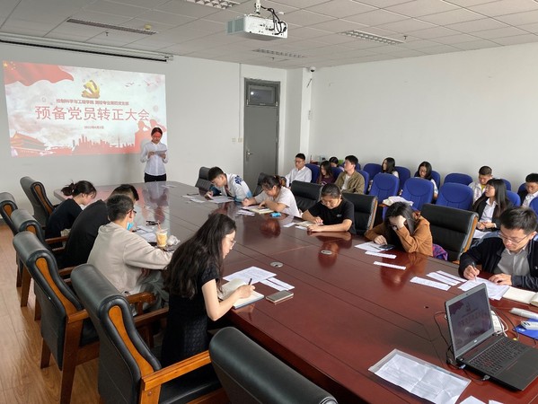 会议严格按照党组织预备党员转正的相关程序开展,大会伊始,支部书记吕敬伟同志报告出席会议的党员人数,到场人员符合会议要求,首先就徐慧洁同志的转正问题进行讨论,由本人宣读转正申请书,汇报预备期内的思想、工作状况。随后由其培养联系人介绍其预备期间的考察情况,一致认为徐慧洁同志已符合正式党员的要求,可以按期转正,接下来由支部大会进行充分讨论并表决徐慧洁同志的转正问题。之后按照流程又讨论并表决了其他三位同志的转正问题。经大会充分讨论,与会正式党员无记名投票表决,四位同志在预备期内政治思想、学习、生活和工作等各方面都取得了巨大的进步,符合一名正式党员的要求,全票同意接收徐慧洁、陈晓雅等四位同志按期转为中共正式党员。