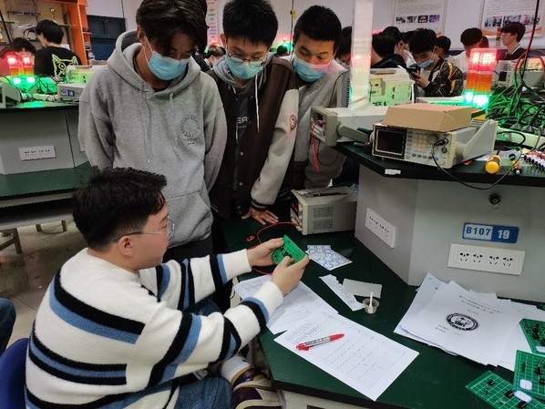 2022年11月20日晚7点至11点,参赛者们携作品来到基础B107进行校电赛第一期焊接专题的验收。